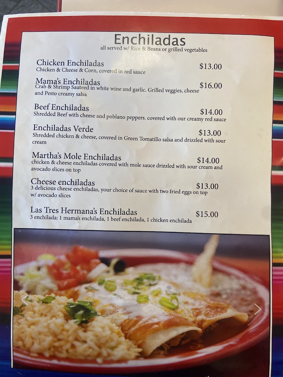 3 enchiladas: 1 mamas enchilada, 1 beef enchilada, 1 chicken enchilada